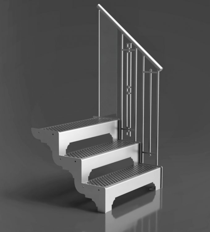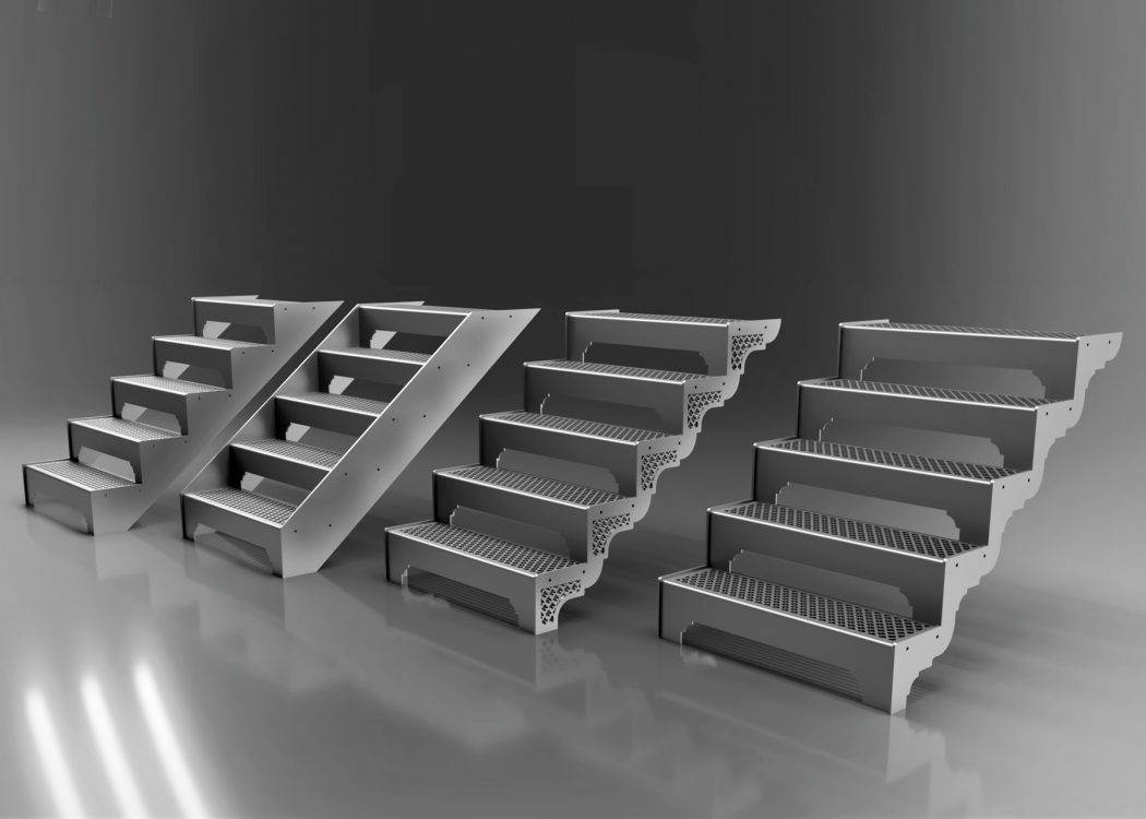 External staircase design has always been limited by the lack of available attractive, versatile components. Traditional cast treads and decking plates are limited in the number of designs, range of sizes available and they tend to be expensive with long manufacture times.